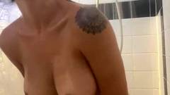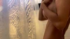 Uma modelo online gostosa exibe seu corpo nu e sexy e se cobre com sabonete no chuveiro, provocando você com seus peitos grandes.