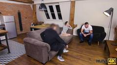 Uma garota é fodida por outro homem na frente de seu marido! Ela tem que pagar suas dívidas, não é?