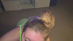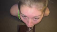 A chupadora de pênis profissional, modelo amadora loira, engole, chupa e faz garganta profunda em um grande pênis preto.