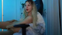 Uma linda loira está entediada em uma cadeira e acaricia sua buceta com os dedos. Ela está ficando cada vez mais excitada, e isso com certeza vai dar asas