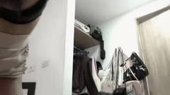 A trans morena tem peitos grandes, que ela gosta de mostrar na frente da câmera. Ela posiciona seu traseiro com a mesma firmeza com um vibrador dentro,