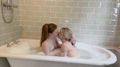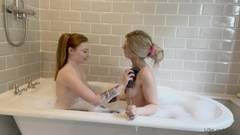 Duas modelos amadoras entram em uma banheira, nuas e cheias de sabão, e se acariciam. Fofo!