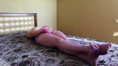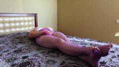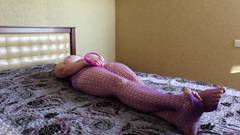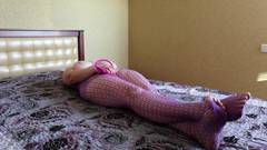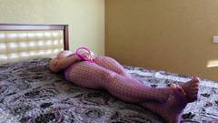 Uma garota sexy coloca um sextoy em sua buceta e se sente tão bem que se toca na cama, deitada, até gozar.