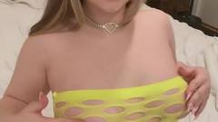 Uma modelo em linha com seios perfurados, Isabelleryan abre as pernas e acaricia a buceta para a câmera.