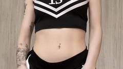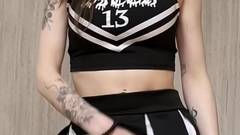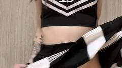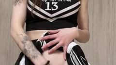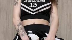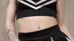 Morena de peitos grandes em seu uniforme escolar maluco se masturba e se dedilha até esguichar todo o esperma que tem