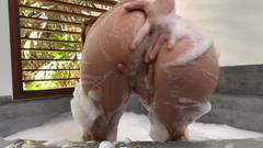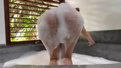 Ruiva excitada acaricia sua buceta em um banho de espuma