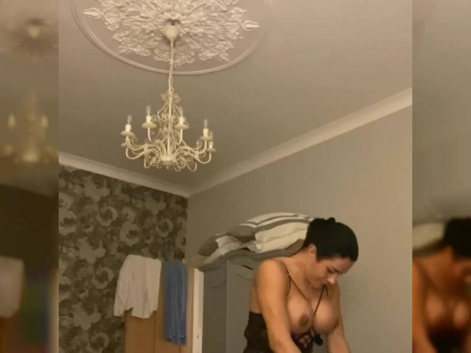Uma morena transexual com peitos grandes veste uma lingerie sexy e domina completamente seu amante, também trans. Ele a fode na bunda até a ejaculação!