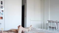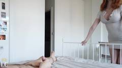 Uma modelo de traços claros e cabelos ruivos chupa o pau de um amante tatuado na frente da câmera.