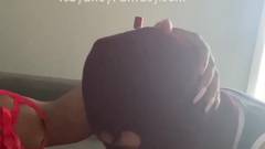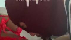 Mulher trans amadora negra de bunda grande tem seu pau chupado, penetra no buraco de seu amante e tem sua bunda lambida.