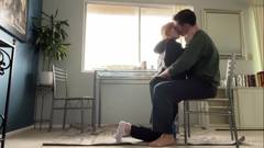 Esse cara tem facilidade com essa loira, pois ela está com muito tesão e é muito fácil convencê-la a se ajoelhar para chupar seu pau.
