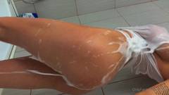Murka, uma modelo on-line, usa o chuveiro para provocar seus espectadores fiéis com seu corpo sexy e molhado e sua bunda redonda perfeita.