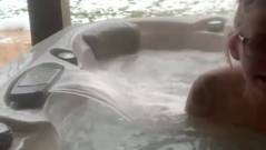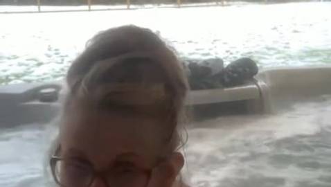 Essa loira amadora com peitos grandes e bunda grande se filma pela webcam enquanto está sentada nua ao lado da piscina no inverno.