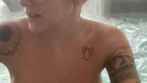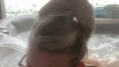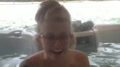 Amadora loira amadora gravando a si mesma nua na webcam em uma piscina