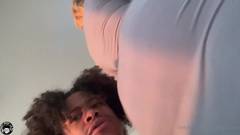 A loira em um vestido azul muito sexy está prestes a engolir profundamente o pau desse homem negro. Ele tira o vestido dela, revelando a bunda grande
