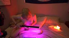 Duas amigas, loiras transexuais, passam o tempo na cama acariciando, estimulando e chupando o pau uma da outra, excitadas e cheias de tesão!