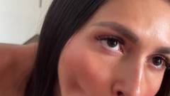 Chupar pênis filmado em POV pode ser excitante! Veja essa morena ajoelhada na frente de um homem e prestes a engolir uma boca cheia de esperma!