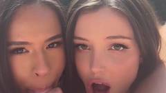 Dainty Wilder e Autumn Falls boquete e foda de tetas em POV