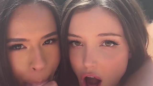 Um cara sortudo recebe um boquete e uma punheta espanhola da bomba Autumn Falls e Dainty Wilder à beira de uma piscina, é o paraíso.