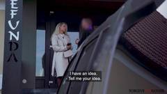 A loira sexy Isabelle Deltor caminha com o padre até a van, onde ela chupa seu pau profundamente e o fode!