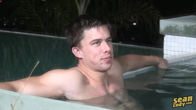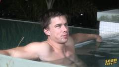 O jovem gay Curt se masturba e depois se banha na piscina