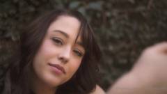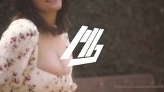 A garota fica sensual quando está no pátio externo.