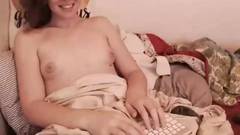 Essa trans de óculos tem seios pequenos e um pênis não muito grande, mas ainda assim nos excita ao mostrar uma cena de masturbação e ejaculação.