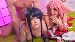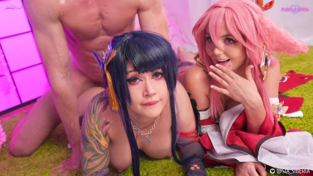 Purple Bitch e Sia Siberia penetram os cu e as conas com brinquedos e, quando um homem se apresenta, entregam-se ao anal!