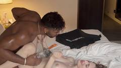 Troy Francisco, um homem com um grande pau negro, estica a buceta apertada da bela Reislin, nesta cena.