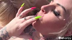 Três lésbicas cheias de tesão estão passando as férias na piscina. Com seus peitos gigantes e xoxotas molhadas, elas ficam tão excitadas que querem foder umas às outras.