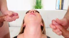 A loira travessa e madura Tiffany Watson usa lingerie sexy para chupar duas picas e conseguir uma dupla penetração.