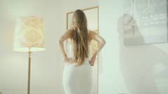 A linda loira de peitos pequenos, a jovem Rachel Rivers, masturba suavemente sua xoxota apertada enquanto troca de roupa íntima.