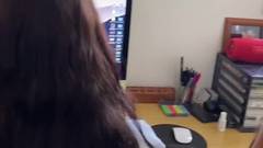 Caryn Beaumont encarna uma secretária submissa pronta para satisfazer todos os desejos, oferecendo um espetáculo intenso que mistura lingerie.