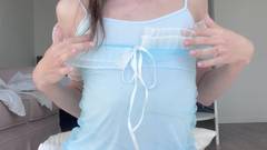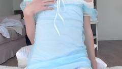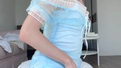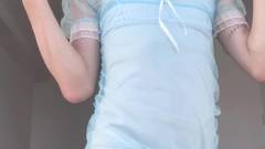 Uma morena transexual fashion usando meias e lingerie etérea tem bolas bem grandes e um pau enorme. Ela o exibe na frente da câmera e rola para ejacular!