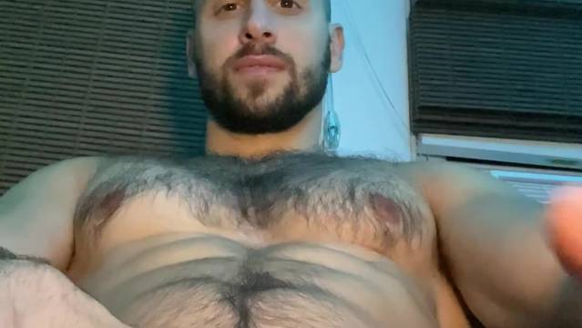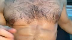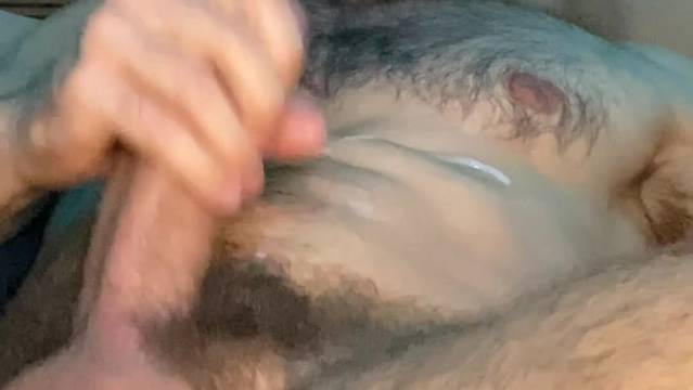 Este é um macho peludo que acaricia sua grande pica em solitário