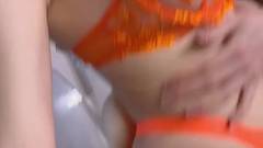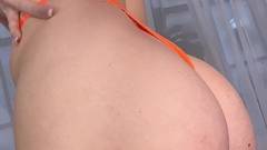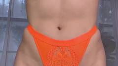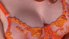 A ruiva Amouranth, em uma lingerie laranja sexy, mostra seus novos peitos! Eles são realmente lindos