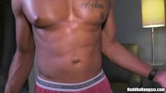 Um casal negro transa apaixonadamente. A vadia tem uma bunda grande e adora penetração estilo cachorrinho, mas fica encantada quando o outro cara se junta