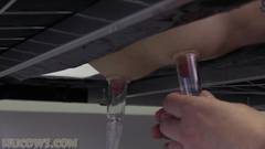 Ruiva magra com tatuagens, gosta de BDSM. Ela adora deitar na cama e ter correntes amarradas em seus peitos, para esticar seus mamilos.