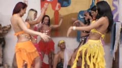 Neste vídeo, você verá um gangbang de fantasia! Garotas transexuais com paus grandes fodem os caras na bunda com paus chupados, muito gostoso!