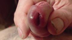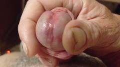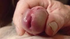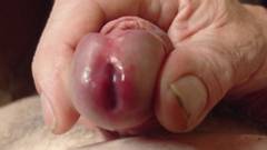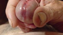 Punheteiro maduro ejacula em close-up em câmera lenta