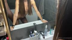 A modelo magrinha Solazola fica com a boca cheia de porra