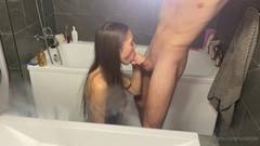 Solazola, uma vadia magrinha, é fodida pelo namorado e recebe o esperma dele, com sua boca de prostituta amadora.