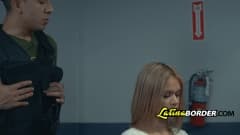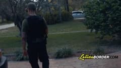 Uma jovem latina é detida por guardas de fronteira. Ela recupera sua liberdade e volta para casa depois de um sexo brutal.