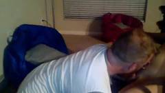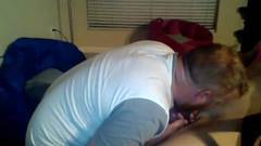 Se há uma coisa que excita esse cara, é poder chupar o pau de uma linda transexual loira quando ele a leva para casa, e ele até transmite tudo em sua webcam.