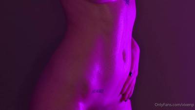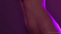 Vixenp de cabelos azuis exibe seu corpo. Usa óleo para massagear seu corpo incrivelmente quente enquanto acaricia seus peitos e bunda grandes