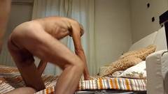 O velho de cabelos grisalhos e óculos esperou muito tempo para conhecer essa trans madura e cheia de tesão. Ele chupou o pau dela e colocou a bunda
