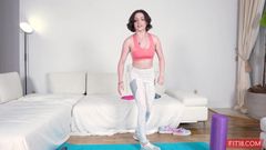 Gracie Gates, uma vadia que adora academia, é fodida no estilo cachorrinho e abre a boca para receber o esperma!