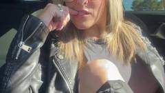 Ela se deixa fazer cócegas em público em seu carro e se masturba com prazer.