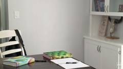 Sua tutora é muito tátil, ela começa a tocar seu pênis duro e o leva para o quarto. Ele tira o pênis para fora para ela chupar e pegar!