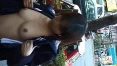 Esta japinha vai andar quase nua na rua e vai mostrar sua buceta peluda para quem quiser tocar nela....