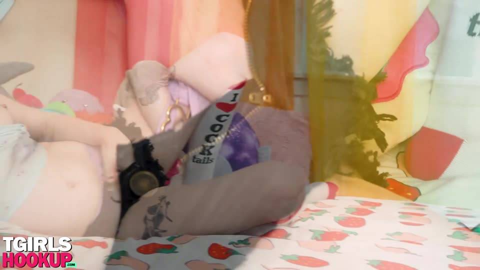 Essa transexual é fascinada por sexo anal e, quando está sozinha, enfia seu enorme brinquedo sexual na bunda na posição estilo cachorrinho diante da câmera.